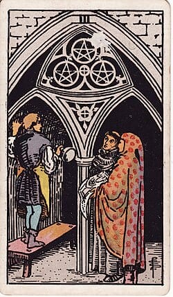 Three of Pentacles. Everyone must play their part. Just as the architect needs the builder, and the builder needs the funding, and the funding needs both the builder and architect to establish a building, so too do we need the warriors, elders, visionaries, artists, farmers, writers, funders, and so on. Everyone has a part to play. What are your skills. What can you do?
